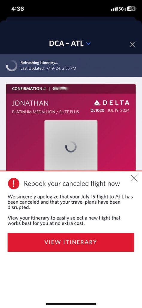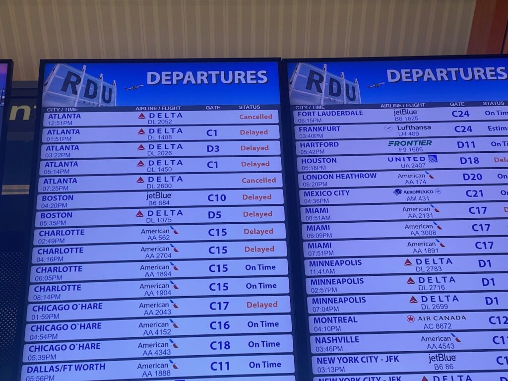 On Friday, I heard quiet chatter at the conference about some cancelled flights (I don’t really turn the news on at these events). People were groaning and joking about delays. My afternoon flight was delayed, then cancelled. Annoying, but it happens, I guess? The Delta mobile app wouldn’t load properly on my phone. As I packed for the airport, I couldn’t get their website to load either.