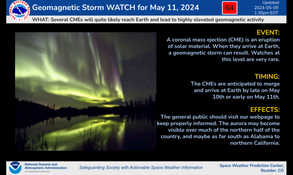 Aurora visibility in the deep south was actually predicted.
